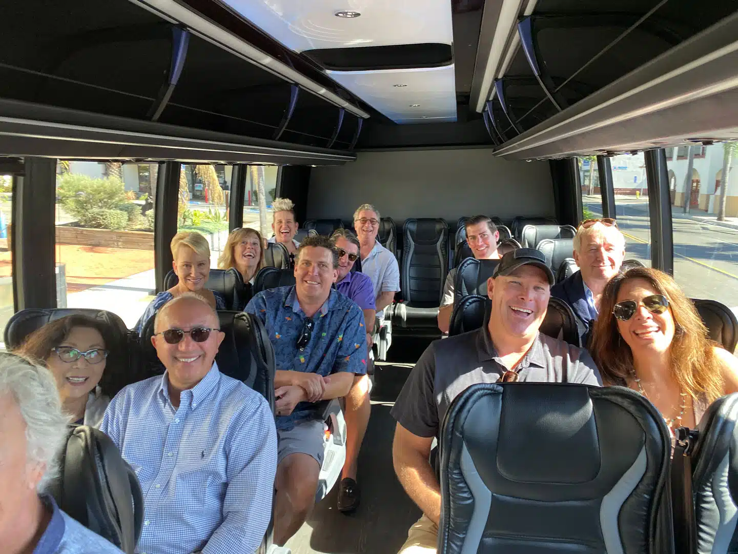 The Sunday sojourn began late in the morning with a chartered bus ride courtesy of Coastal Concierge. Ghostlight members John Gerngross and Cheryl Doty, Katie Dewitt, Brett and Natalie Hodges, and Bailey and Sheila Caldwell all piled into the leather seats. Board members Charles d’LArbre and his wife Barbara, Amy MacLeod and her husband Don, and Lobero staffers David Asbell and his wife Denise, Jim Dougherty, and Brandon Mowery all took in the day with Frank Tabar of Farmers & Merchants Trust and his wife Mariko. Associates board president Mindy Denson also joined with her husband Chris, and their friend and new Branch Manager of Farmers & Merchants Bank, Nolan Nicholson and Hubert Guilliot de Suduiraut.