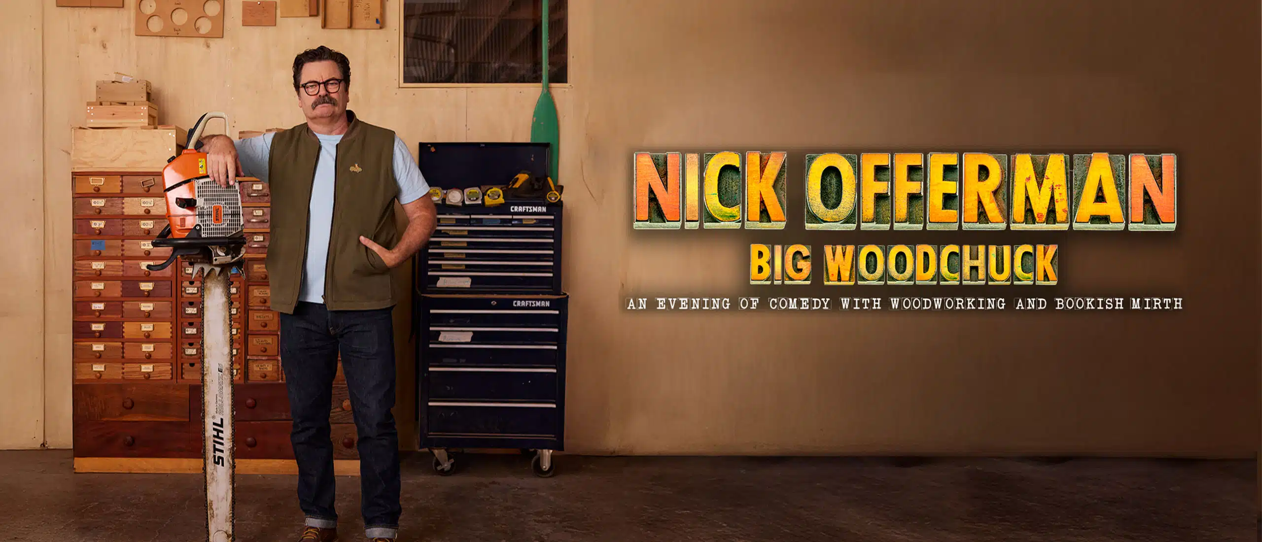 (Ticket includes a preferred seat, a signed copy of his new book “Little Woodchucks: Offerman Woodshop’s Guide to Tools and Tomfoolery” and front of the line access for personalization of the book after the show – does NOT include access to pre-show reception)